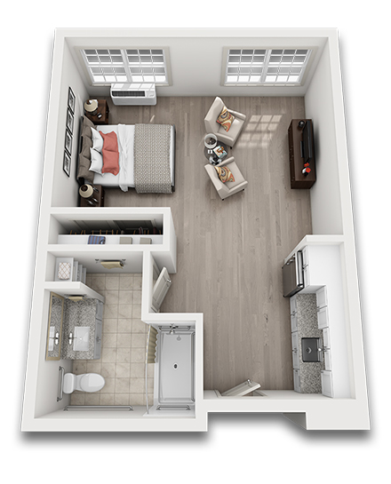Enjoy modern, comfortable living spaces thoughtfully designed for your well-being. Our community amenities, including a fitness center, pool, library, and movie theater, offer something for everyone.